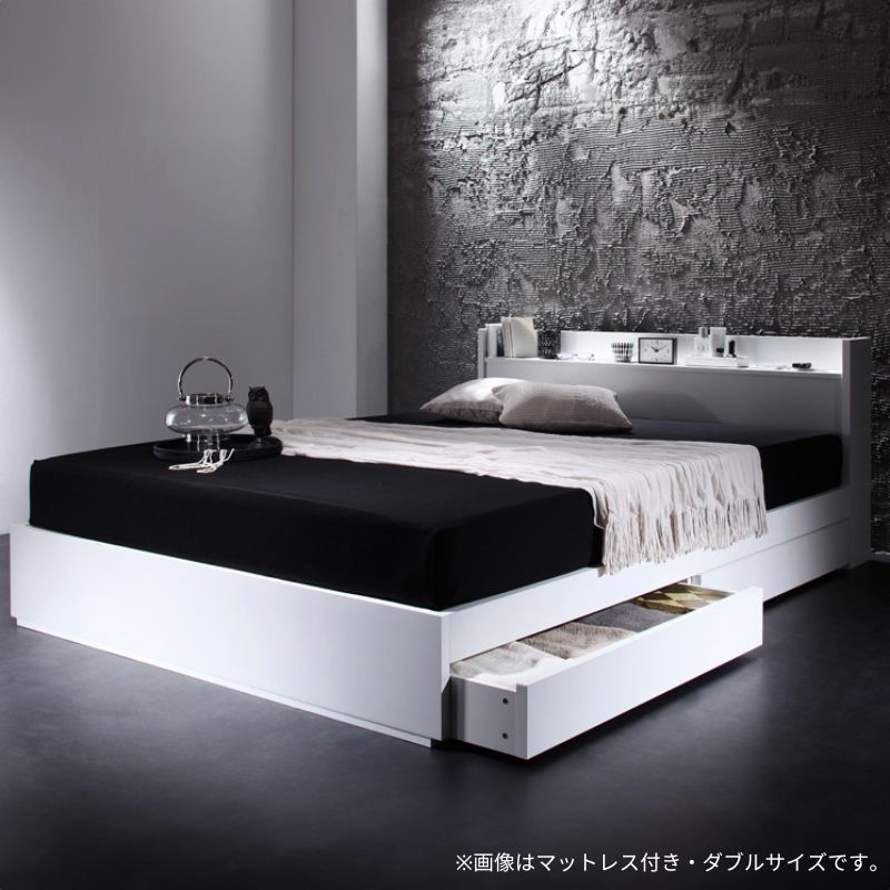 棚・コンセント付き収納ベッド VEGA ヴェガ プレミアムボンネル付 シングル フレームカラー ホワイト マットレスカラー ブラック お客様組立