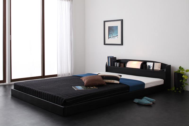 照明・棚付きフロアベッド ROSSO ロッソ ボンネルコイルマットレス付 セミダブル レギュラー丈 フレームカラー ホワイト マットレスカラー アイボリー