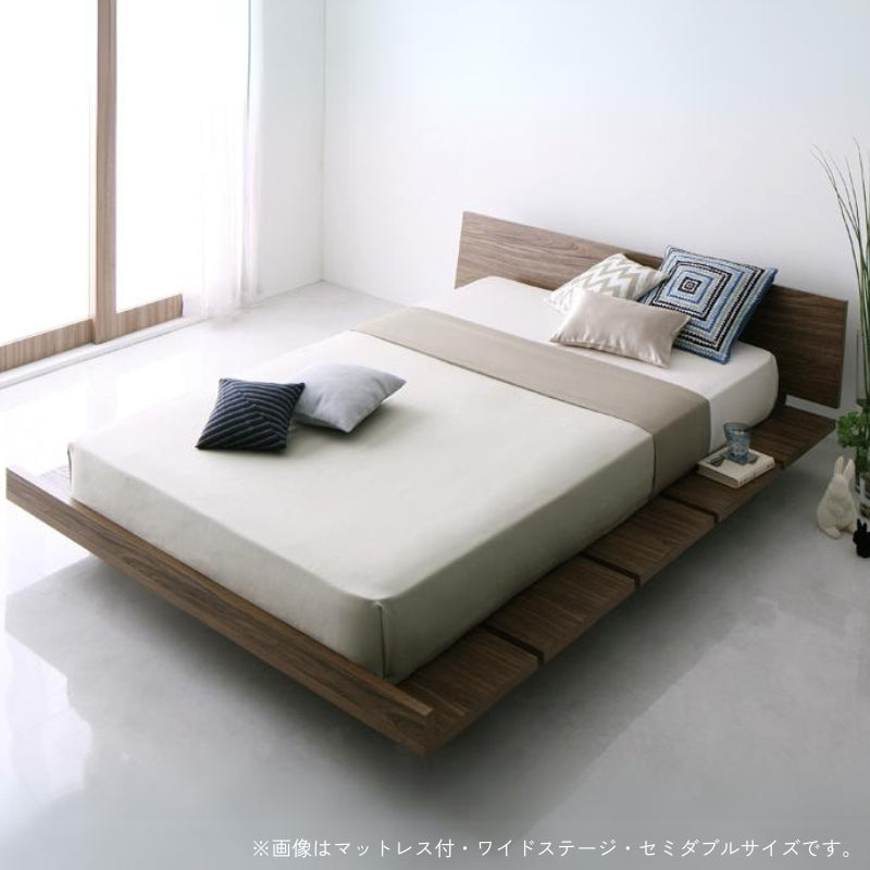 モダンデザインローベッド Masterpiece マスターピース プレミアムボンネル付 ワイドステージ ダブル フレームカラー ウォルナットブラウン マットレスカラー ブラック お客様組立