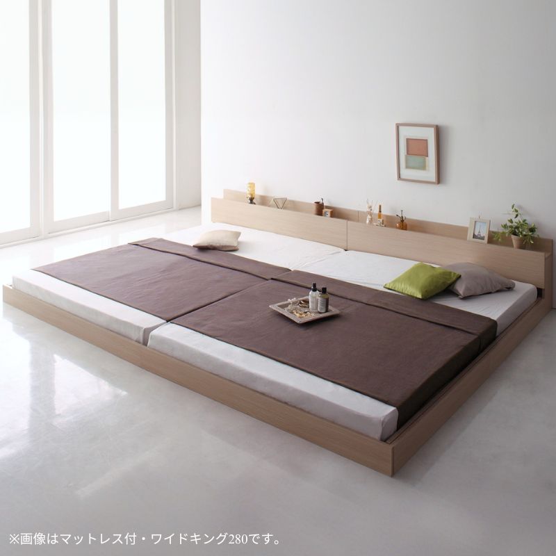 スーパーワイドキングサイズ 大型モダンフロアベッド ALBOL アルボル スタンダードボンネル付 ワイドK240(SD×2) フレームカラー オークホワイト マットレスカラー ブラック お客様組立