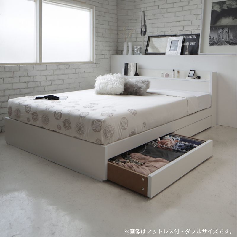 棚・コンセント付き収納すのこベッド Fort spade フォートスペイド プレミアムポケット付 シングル フレームカラー ホワイト マットレスカラー ホワイト お客様組立
