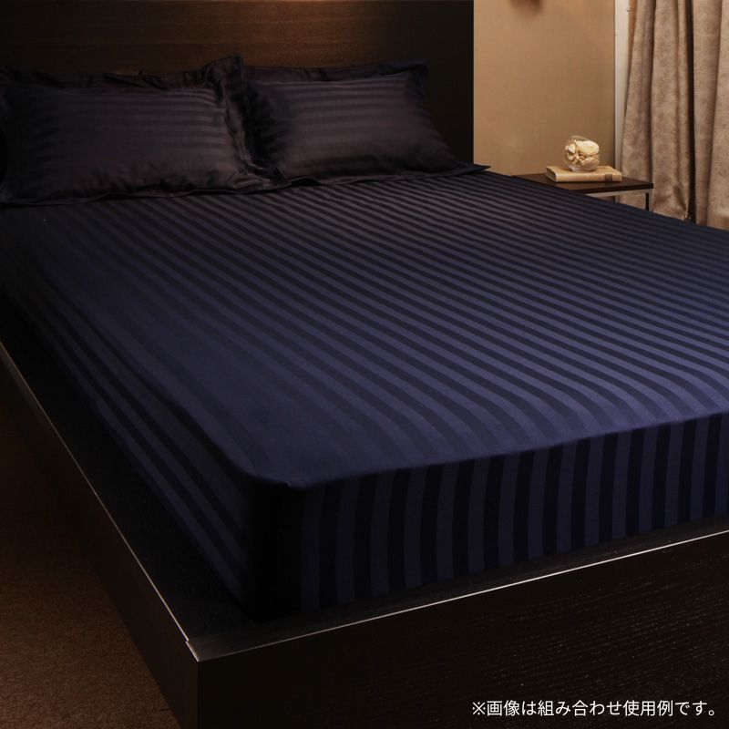 9色から選べるホテルスタイル ストライプサテンカバーリング ベッド用ボックスシーツ セミダブル 寝具カラー ミッドナイトブルー