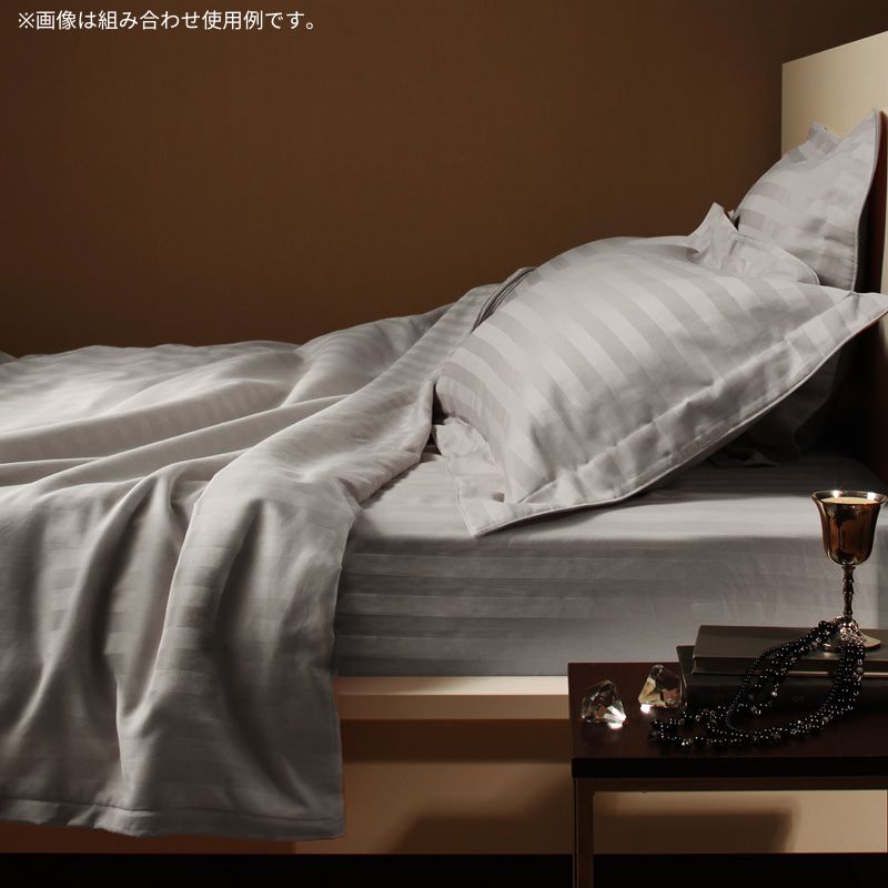 9色から選べるホテルスタイル ストライプサテンカバーリング ベッド用ボックスシーツ セミダブル 寝具カラー シルバーアッシュ