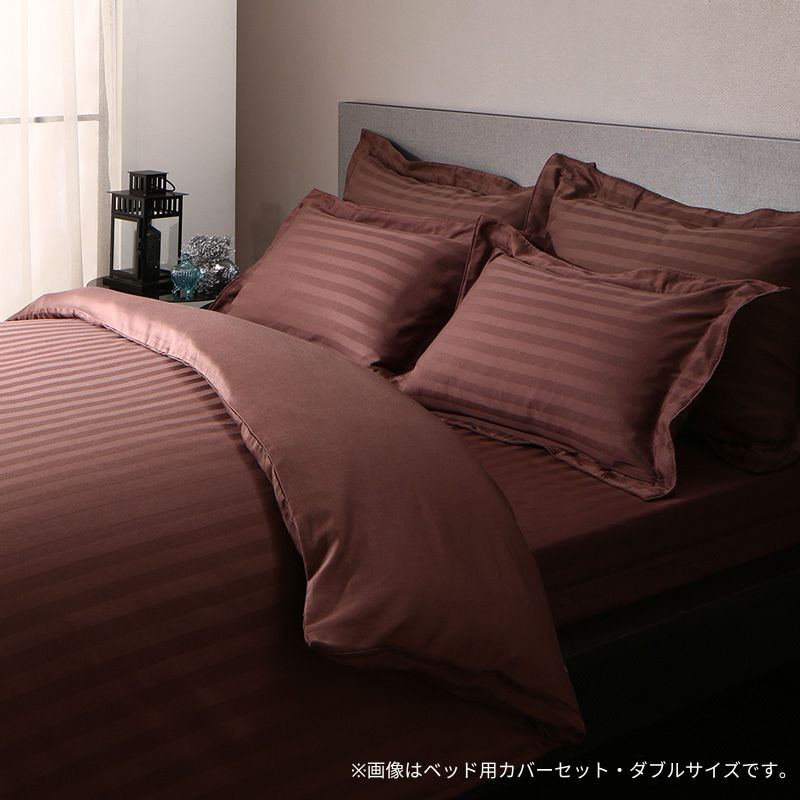 9色から選べるホテルスタイル ストライプサテンカバーリング 布団カバーセット ベッド用 シングル3点セット 43×63用 寝具カラー モカブラウン