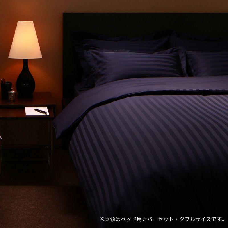 9色から選べるホテルスタイル ストライプサテンカバーリング 布団カバーセット ベッド用 セミダブル3点セット 43×63用 寝具カラー ミッドナイトブルー