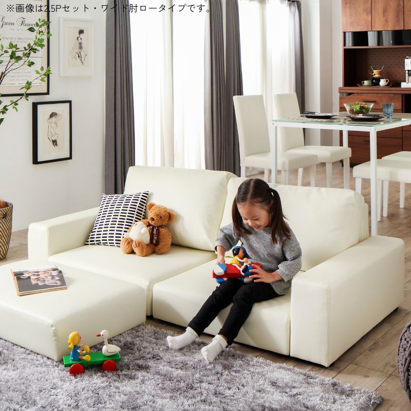 フロアソファ Lex レックス ソファ&オットマンセット スリム肘 ロータイプ 2P 座面カラー アイボリー