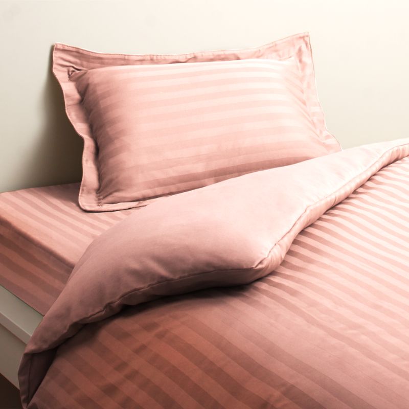 ショート丈ベッド用 6色から選べる 綿混サテン ホテルスタイルストライプカバーリング 枕カバー 1枚 寝具カラー ベビーピンク