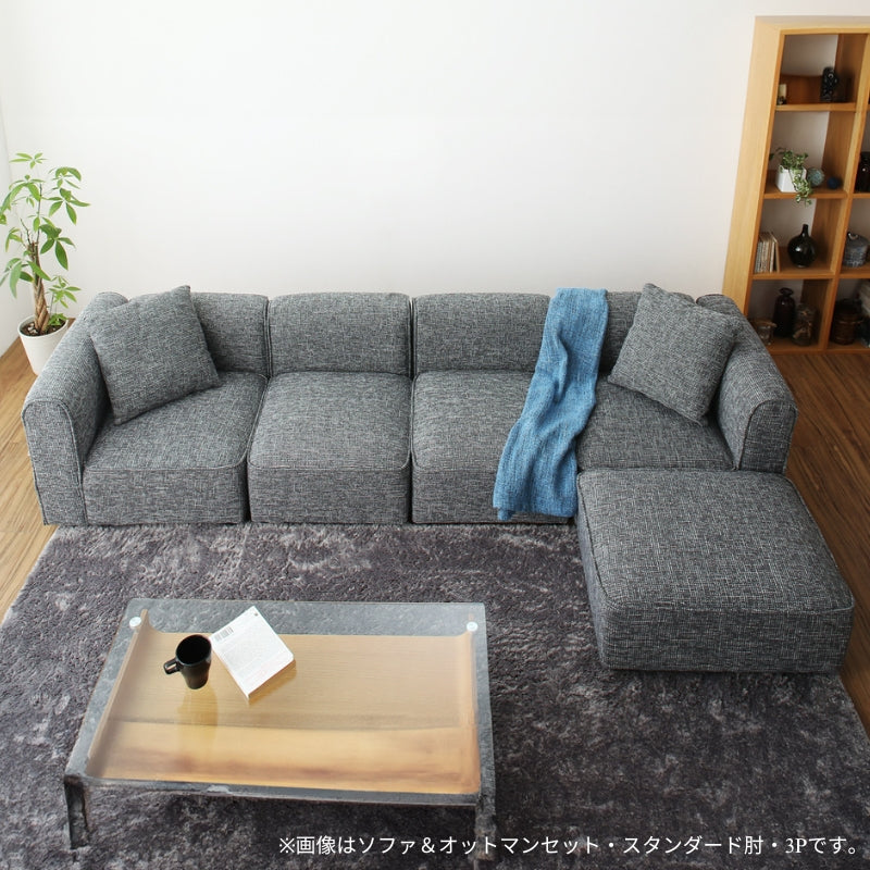 ワイドローソファ Lowel ローウェル ソファ&オットマンセット スタンダード肘 3P 座面カラー グレー