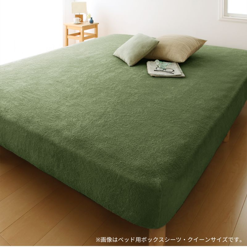 2台を包むファミリーサイズ 年中快適100%コットンタオルのパッド・シーツ suon スオン ベッド用ボックスシーツ クイーン 寝具カラー オリーブグリーン