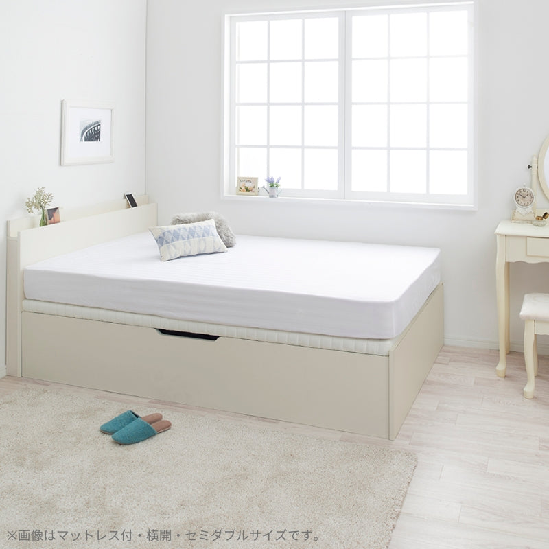 通気性抜群 棚コンセント付 跳ね上げすのこベッド Nikolay ニコライ 薄型スタンダードボンネル付 深さラージ 横開 シングル フレームカラー ホワイト マットレスカラー ホワイト お客様組立