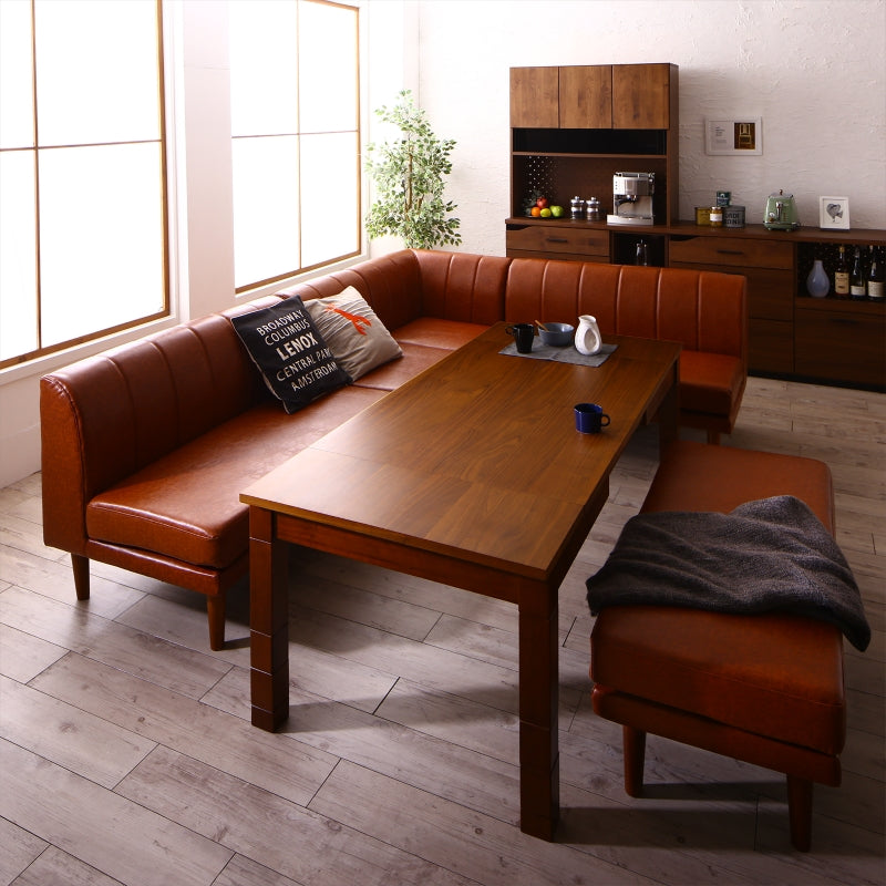 6段階高さ調節 伸縮式こたつ 大型ソファダイニング STEWAR ステュアー 4点:ソファ4点 2P×2+1P+コーナー フレームカラー・座面カラー キャメル お客様組立
