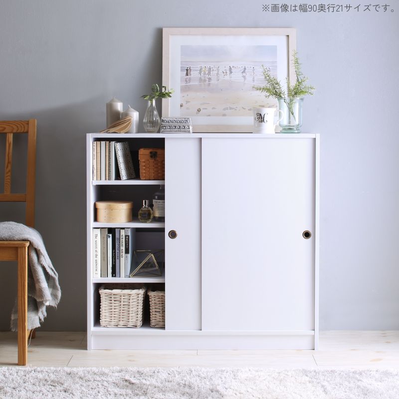 どんな場所にも置けるスマートな引き戸収納 幅90 奥行16 本体カラー ホワイト