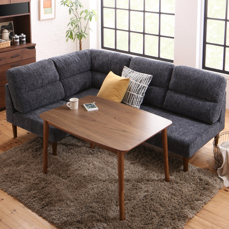 高さ調節可能 ハイバックこたつソファダイニング Leoru レオール 4点:テーブル+ソファ3点 W135+2P+1P+コーナー フレームカラー・座面カラー ブラウン お客様組立
