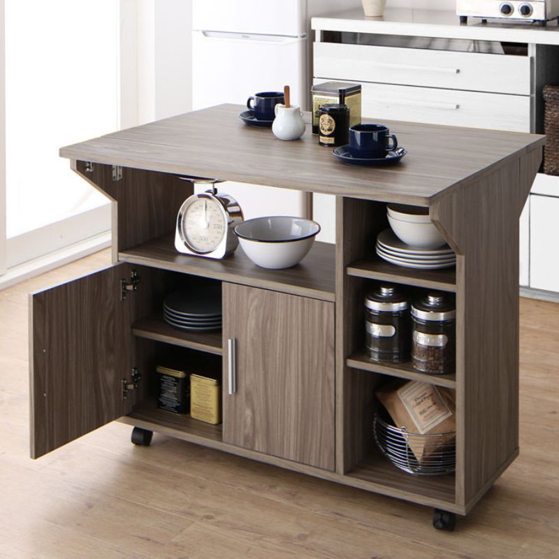 【KASANE】収納にもテーブルにも バタフライキッチンカウンター 本体カラー ライトグレー
