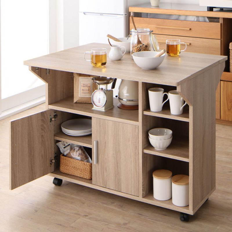 【KASANE】収納にもテーブルにも バタフライキッチンカウンター 本体カラー シナモングレージュ