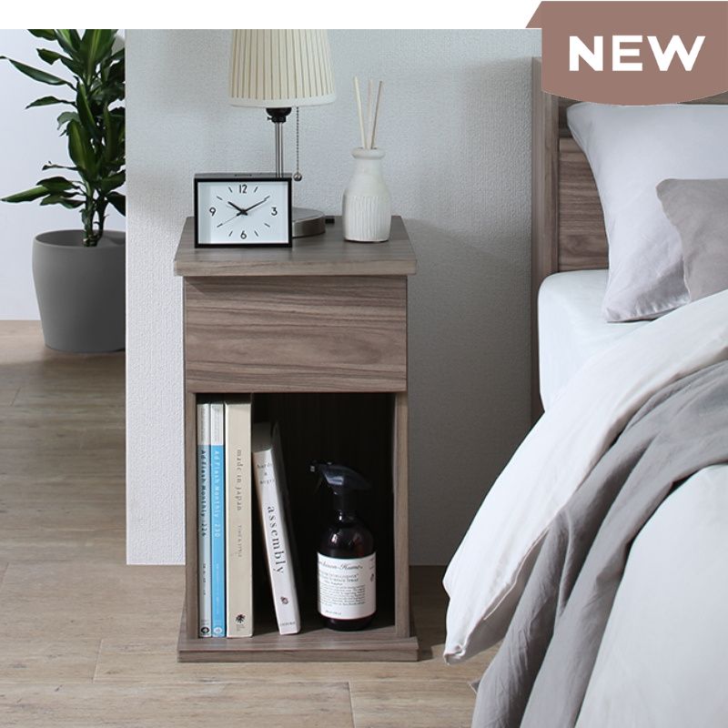 サイドテーブル 収納 木製 寝室 ナイトテーブル 引出し・コンセント付 【KASANE】 幅30㎝ カラー ライトグレー