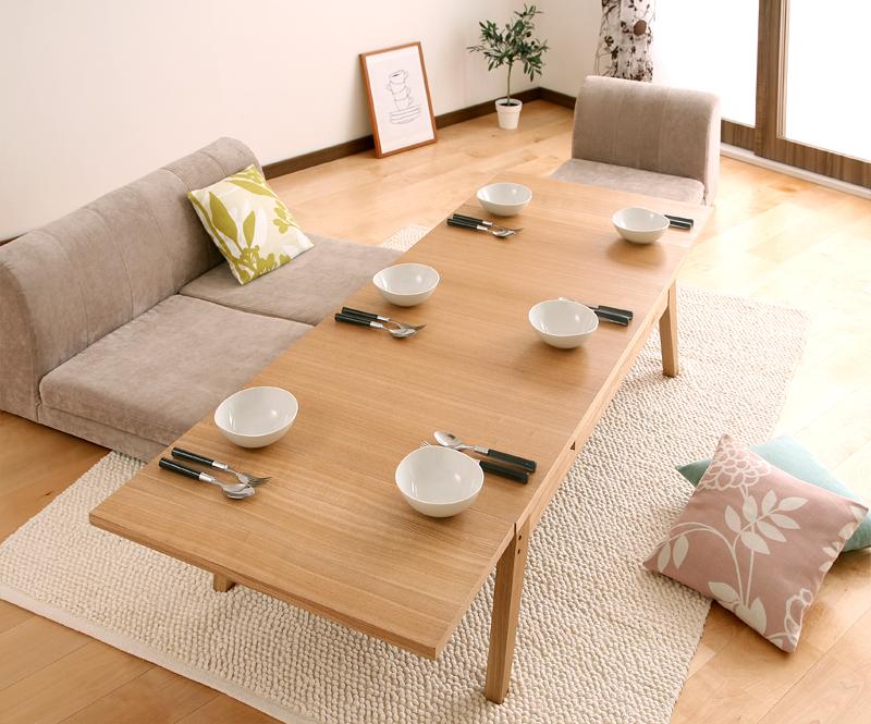 ワイドに広がる伸長式!天然木エクステンションリビングローテーブル Paodelo パオデロ