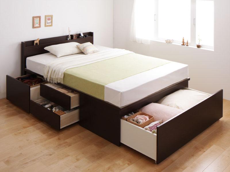 棚・コンセント付 天然木調引き出し収納ベッド 【KASANE】
