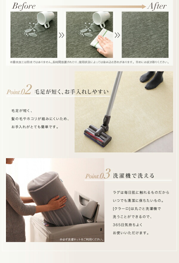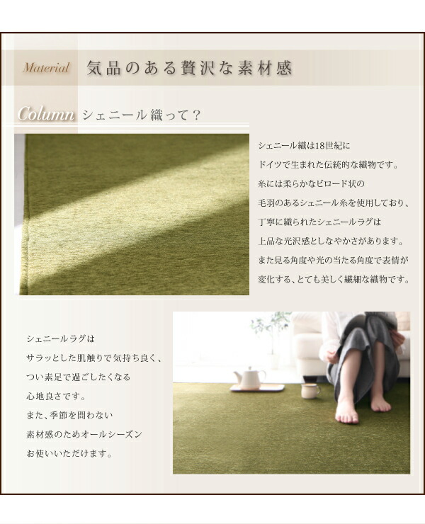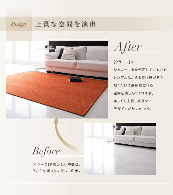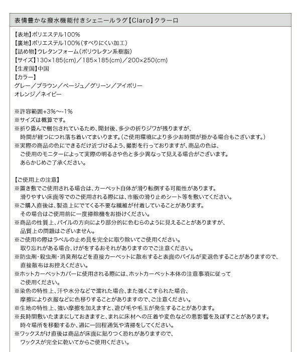 表情豊かな撥水機能付きシェニールラグ claro クラーロ