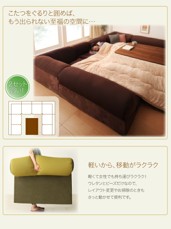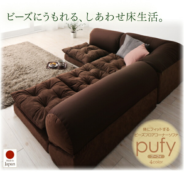体にフィットするビーズフロアコーナーソファ