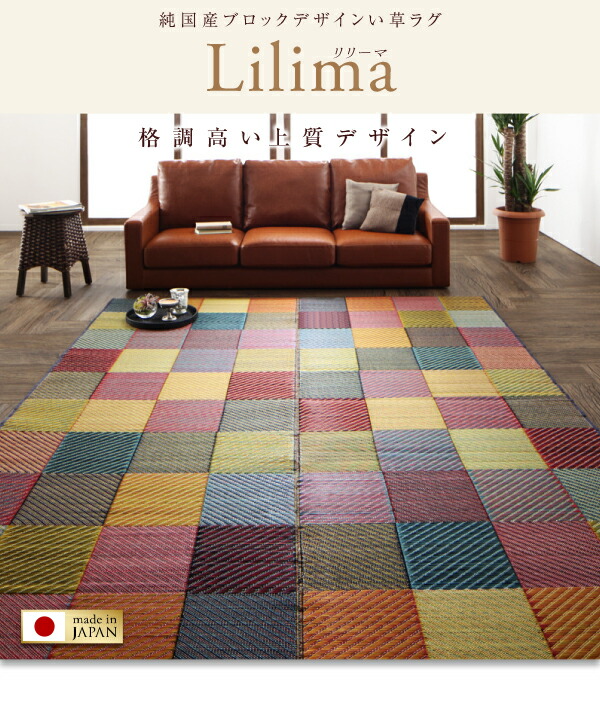 純国産ブロックデザインい草ラグ lilima リリーマ