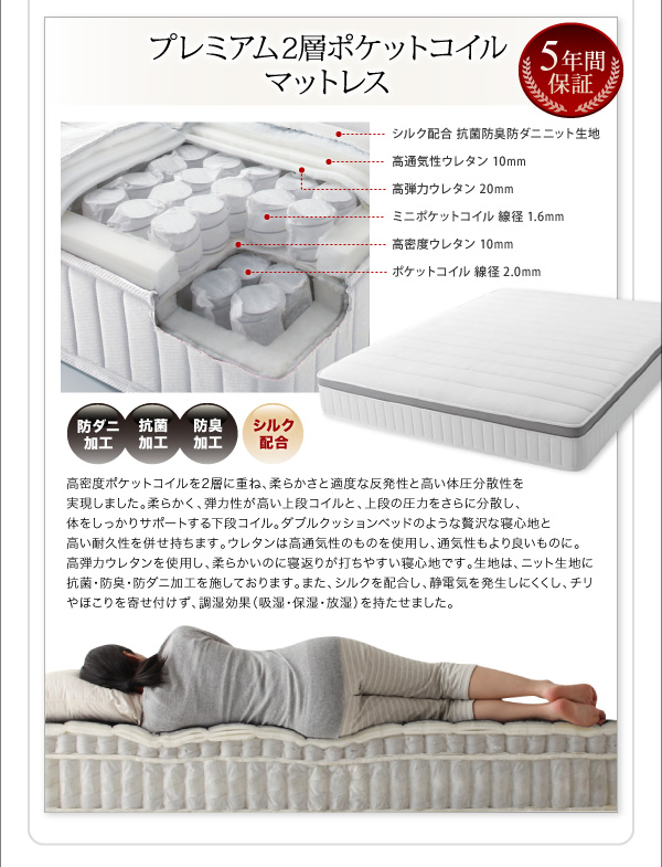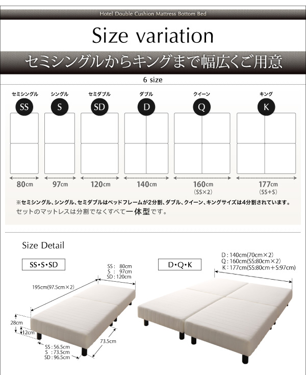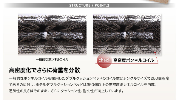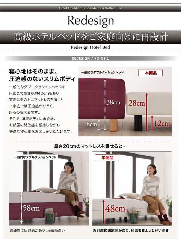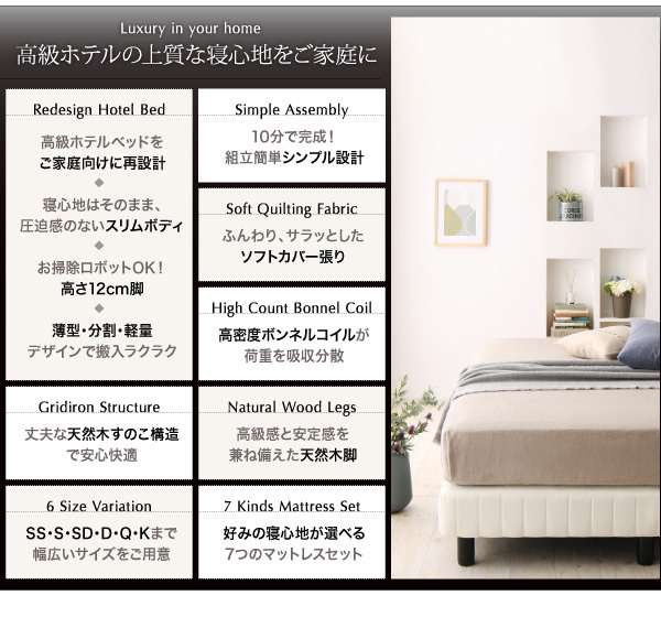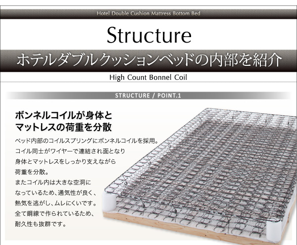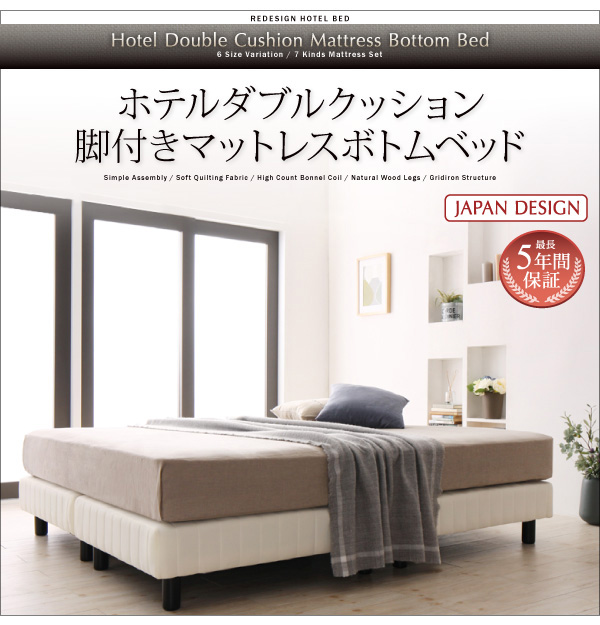 搬入・組立・簡単 寝心地が選べる ホテルダブルクッション 脚付きマットレスボトムベッド