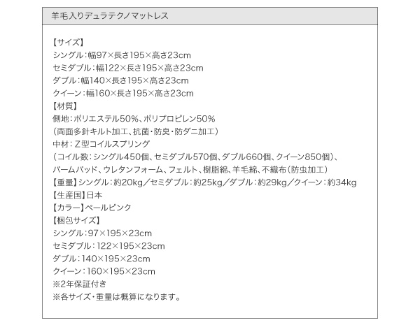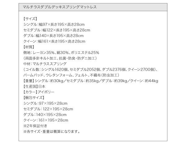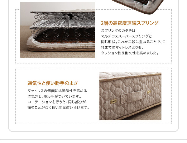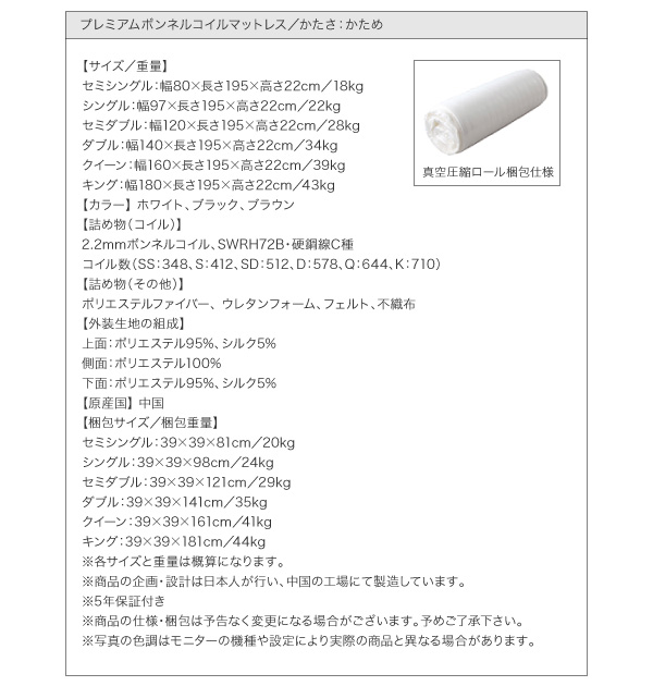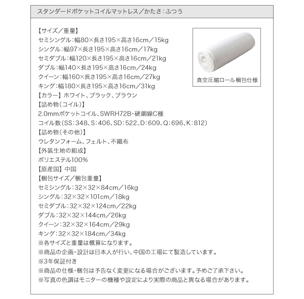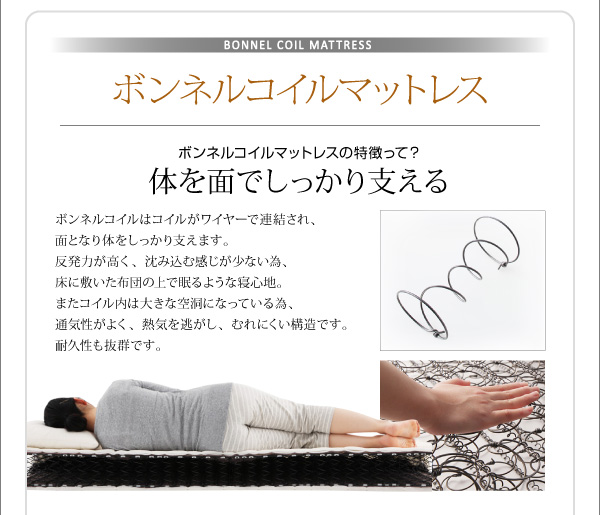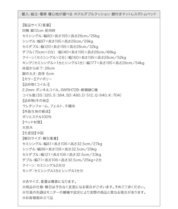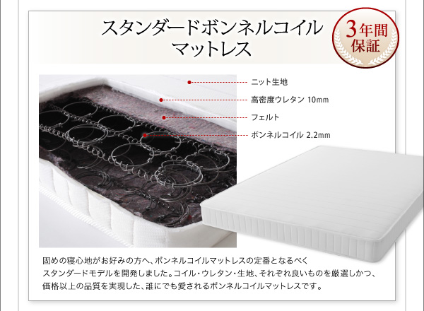 【スタンダードボンネルコイルマットレス付き・セミシングル/セミダブル/ダブル/クイーン/キング・お客様組立/組立設置付】