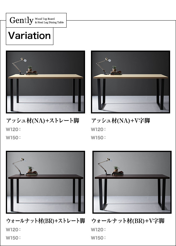 天然木天板 スチール脚 モダンデザインテーブル Gently ジェントリー