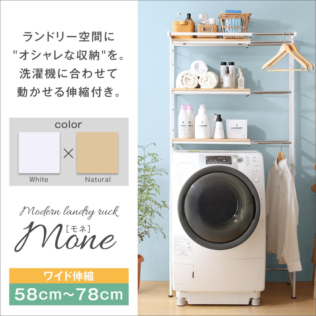 伸縮機能付き 洗濯機上のスペースが有効活用できる ナチュラルランドリーラック Mone モネ