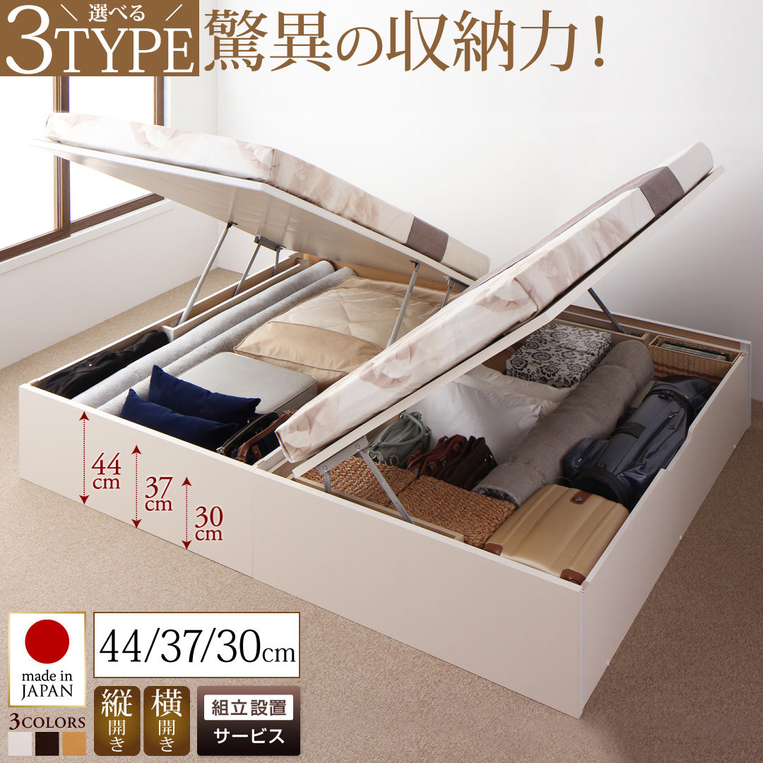 跳ね上げ式ベッドの深さ3タイプ 収納物の量で選べる