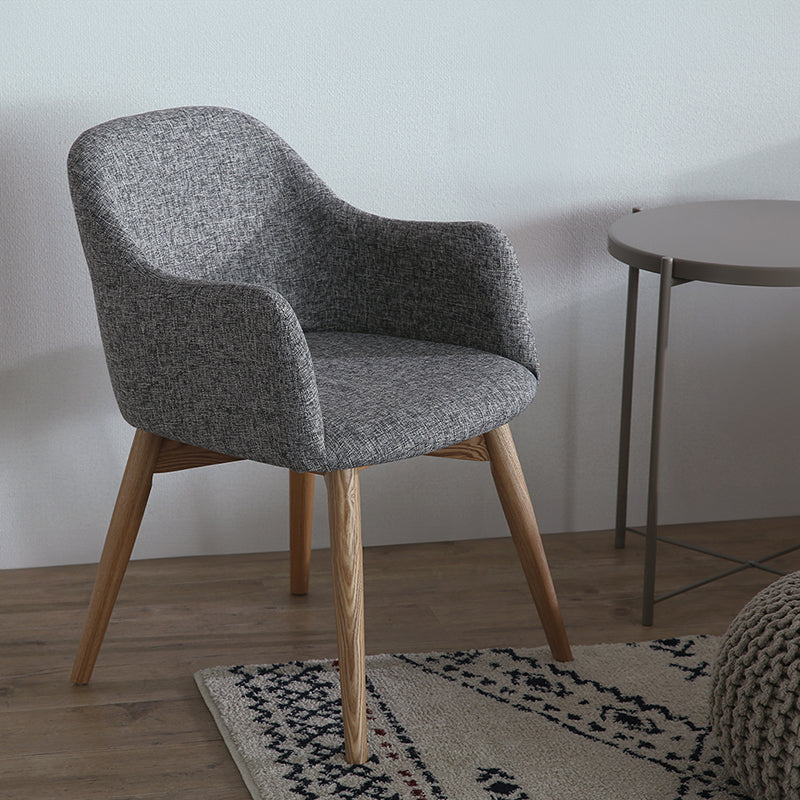 グレーのチェアは、ニュアンスコードのお部屋を作りにぴったりなカラーです。混色の糸の張地が、グレー単色だけでは出せない濃淡のニュアンスを醸し出してくれます。柔らかなくつろげる雰囲気の中にも上品さをプラス出来るから、お部屋をセンスアップしてくれます。