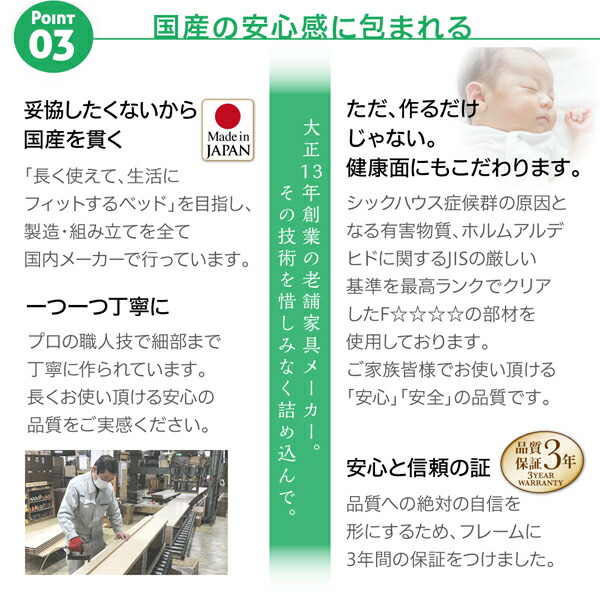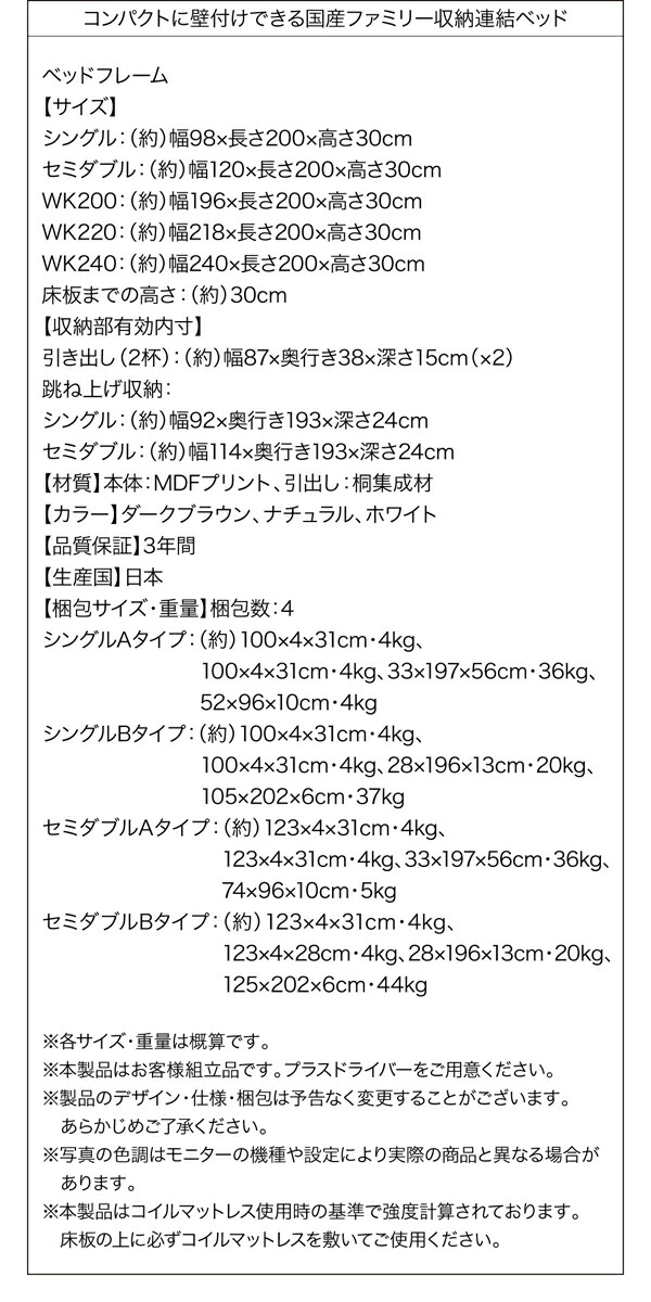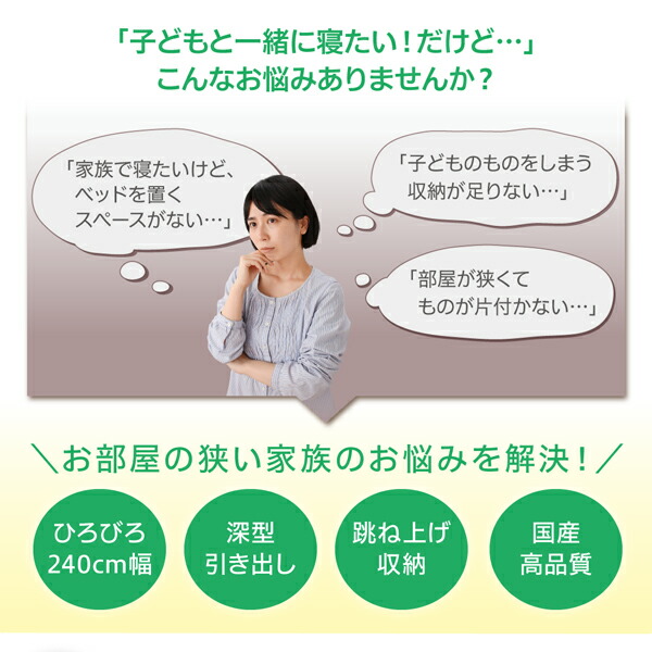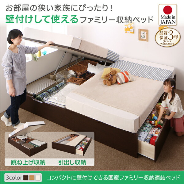 コンパクトに壁付けできる国産ファミリー収納連結ベッド Alonza アロンザ