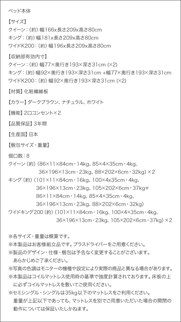 棚・コンセント付 天然木調引き出し収納ベッド 【KASANE】