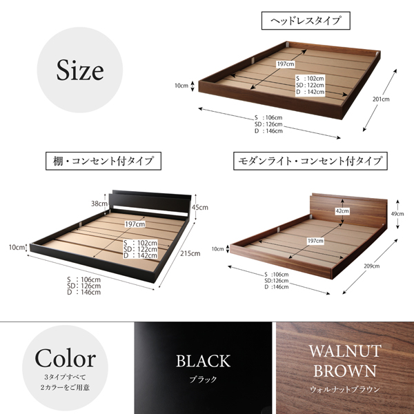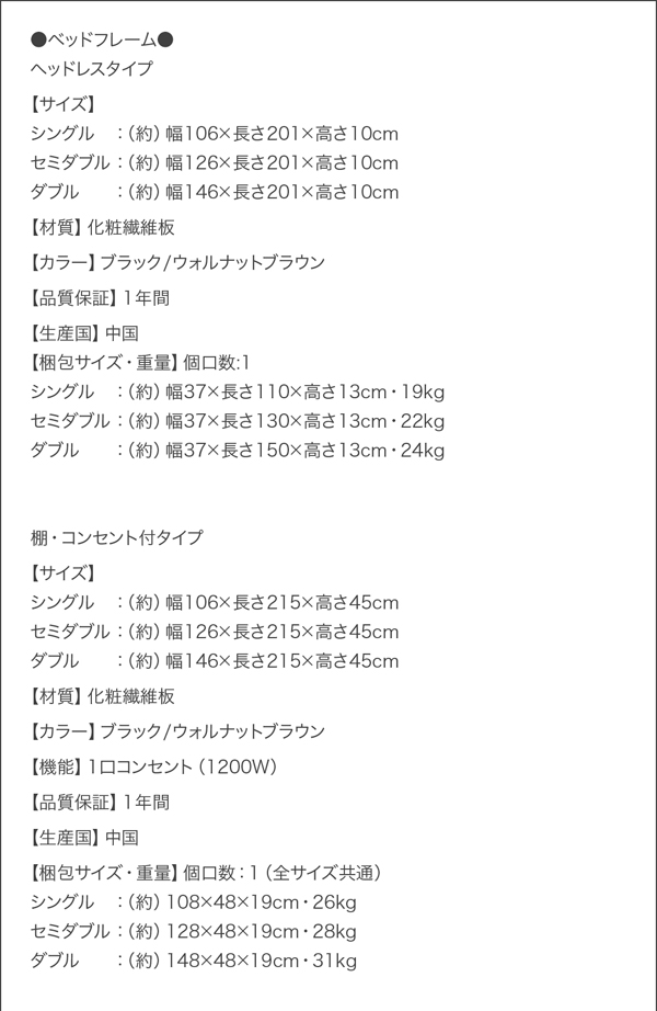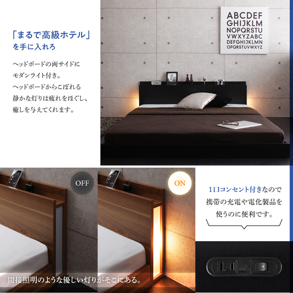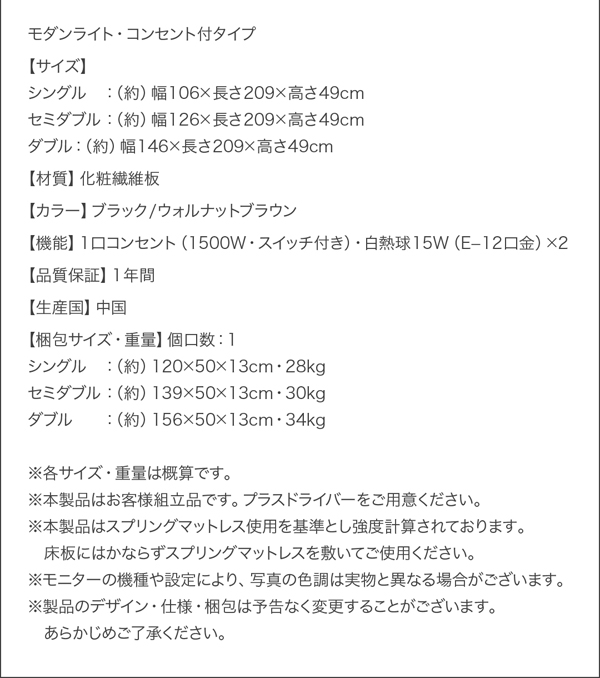 【すべてのセット の ヘッドレス/モダンライト・コンセント付・シングル/セミダブル/ダブル・お客様組立/組立設置付】