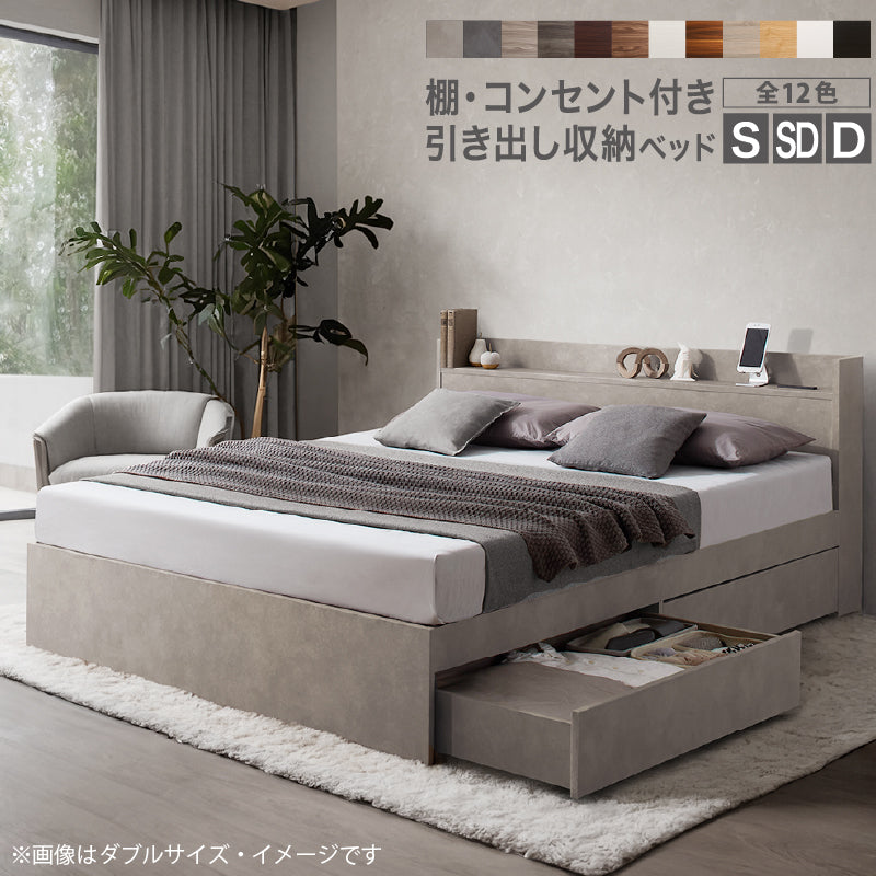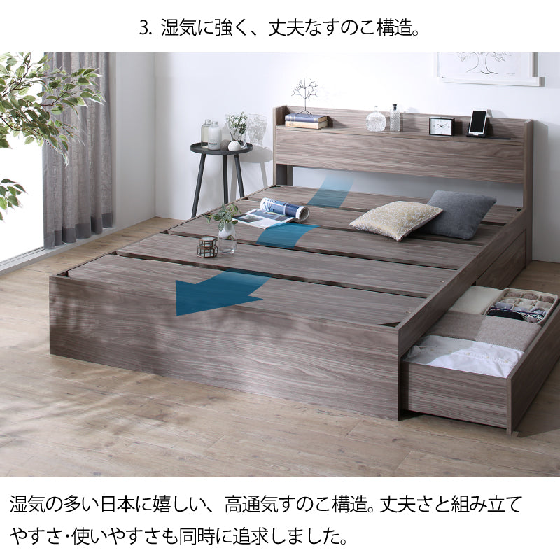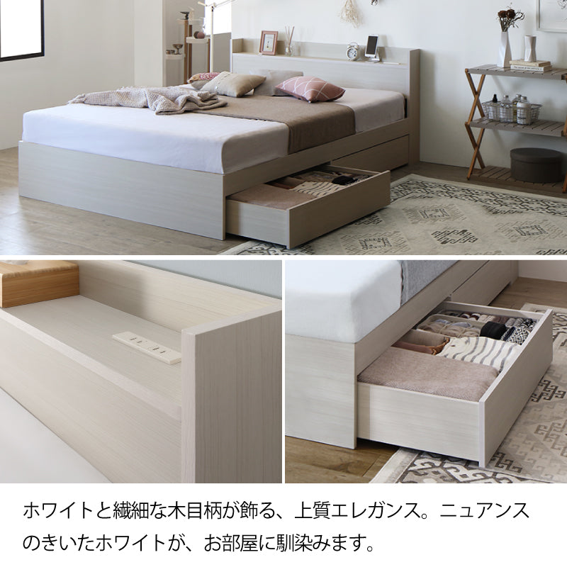 棚・コンセント付 天然木調引き出し収納ベッド【KASANE】