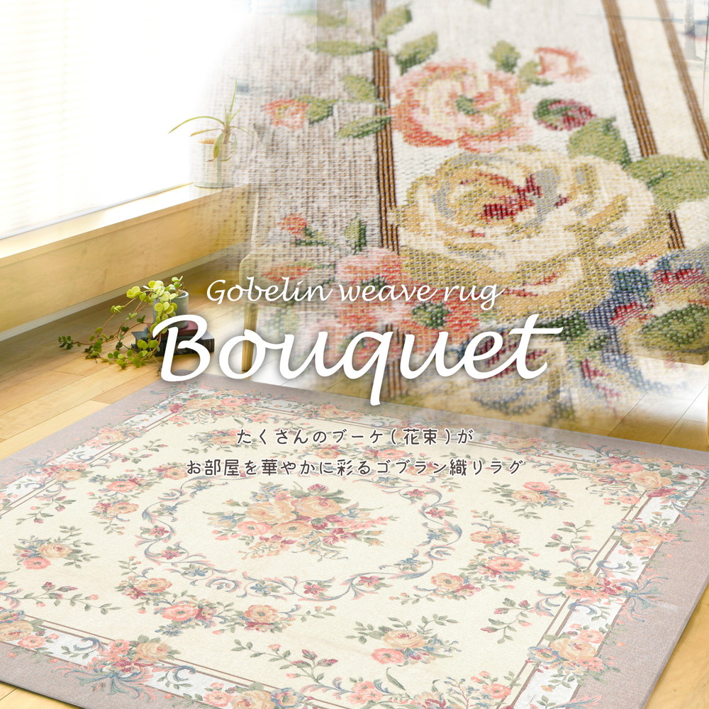 ゴブランシェニールラグ 撥水 ブーケ
