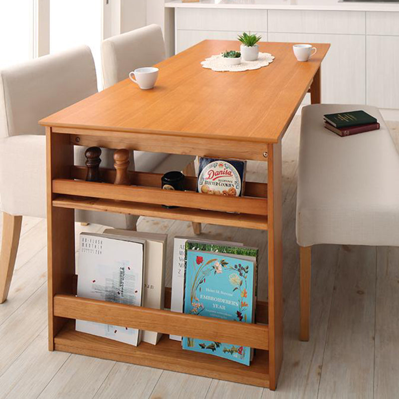 伸長式 ダイニング テーブル 3段階伸縮 収納棚付き テーブル ドリーミーシェルフ