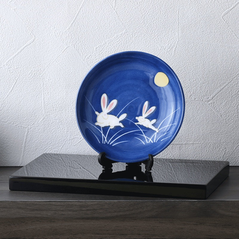 縁起柄として古くから愛されてきた月見うさぎを、小さなお皿の形でおつくりしました。深みのある藍色のきらめきは美しく、長くご愛用いただけます。
