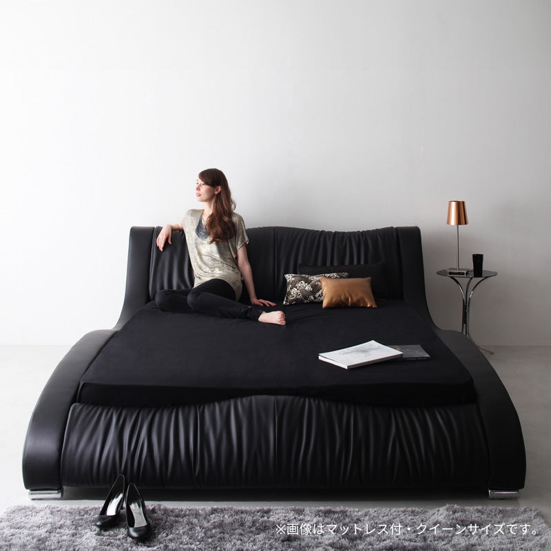 モダンデザイン・高級レザー・デザイナーズベッド Fortuna フォルトゥナ プレミアムボンネル付 クイーン(Q×1) フレームカラー ブラック マットレスカラー ブラック 組立設置サービス付き