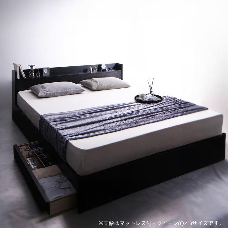 棚・コンセント付収納ベッド Rizeros リゼロス スタンダードポケット付 クイーン(Q×1) フレームカラー ブラック マットレスカラー ブラック 組立設置サービス付き