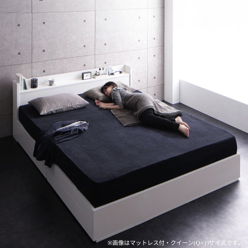 棚・コンセント付収納ベッド Rizeros リゼロス 国産カバーポケット付 クイーン(Q×1) フレームカラー ホワイト マットレスカラー グレー 組立設置サービス付き