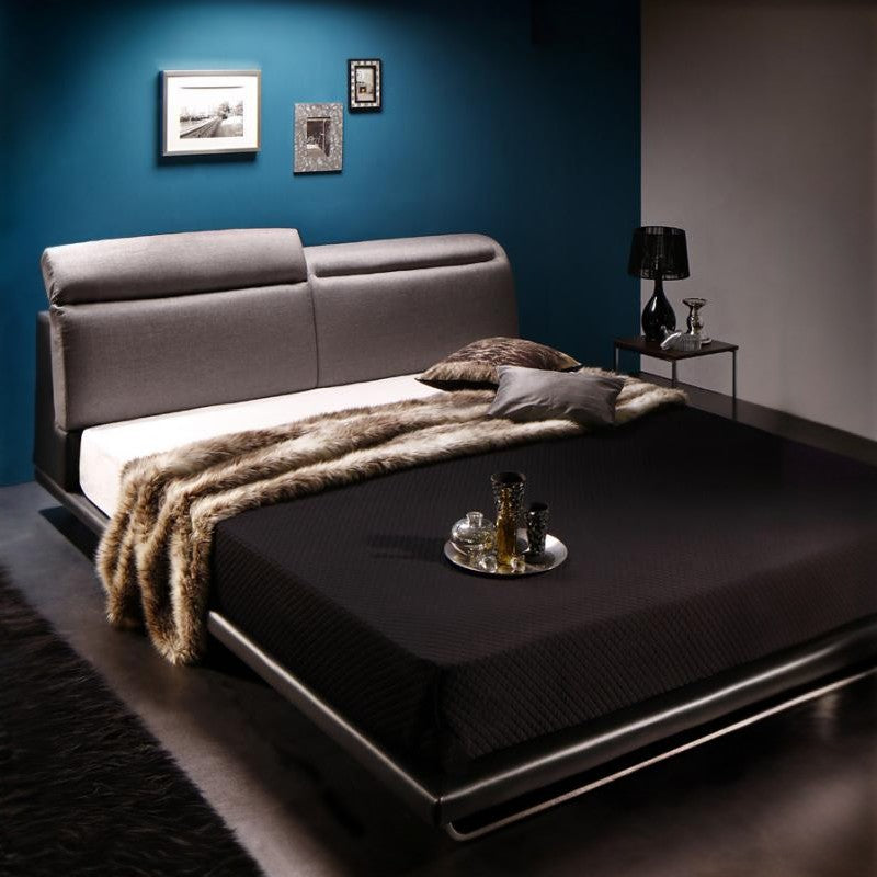 リクライニング機能付き・モダンデザインローベッド Neptuno ネプトゥーノ スタンダードポケット付 ダブル フレームカラー ライトグレー×ブラックレザー マットレスカラー ホワイト 組立設置サービス付き