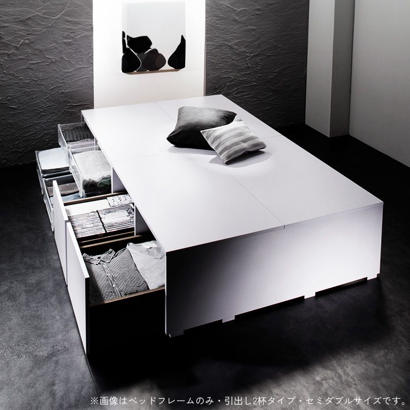 衣装ケースも入る大容量デザイン収納ベッド SCHNEE シュネー ベッドフレームのみ 引出し4杯 セミダブル フレームカラー ホワイト 組立設置サービス付き