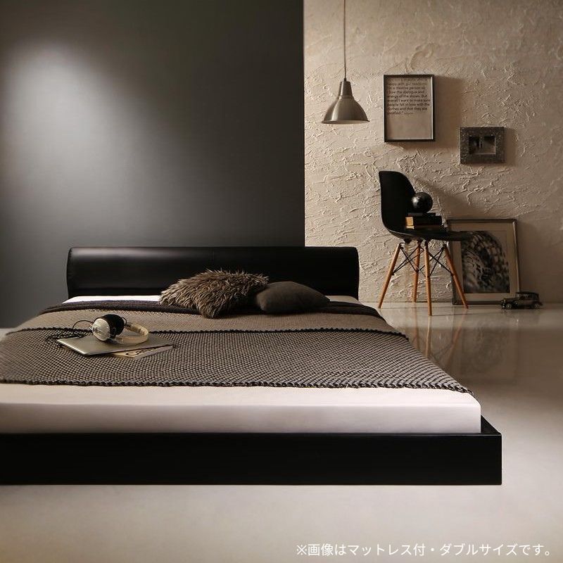 高級感のある モダンデザインレザーフロアベッド GIRA SENCE ギラセンス 国産カバーポケット付 セミダブル フレームカラー ブラック マットレスカラー グレー 組立設置サービス付き