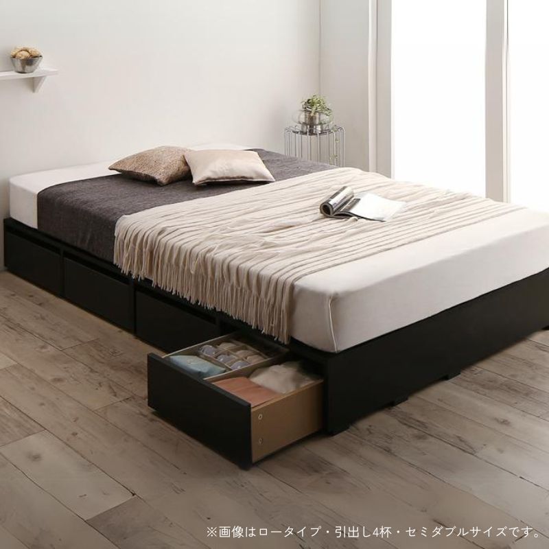 布団で寝られる大容量収納ベッド Semper センペール 薄型プレミアムポケット付 ロータイプ ひき出しなし セミダブル フレームカラー ブラック マットレスカラー ホワイト 組立設置サービス付き