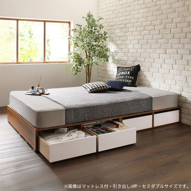 布団で寝られる おしゃれなヴィンテージ・モダン風 引き出し収納バイカラーベッド スタンダードボンネル付 引き出し4杯 シングル フレームカラー ウォルナット×ホワイト マットレスカラー ホワイト 組立設置サービス付き