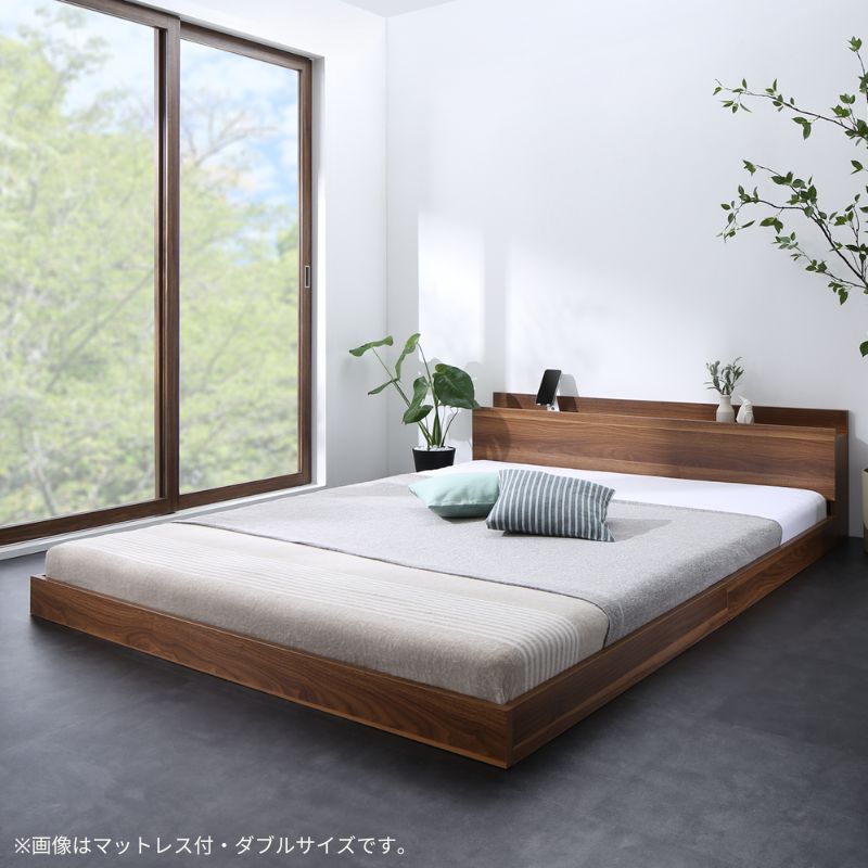 棚・2口コンセント付きロータイプ Skyline2 スカイライン2 ベッドフレームのみ シングル フレームカラー ウォルナットブラウン マットレスカラー 組立設置サービス付き