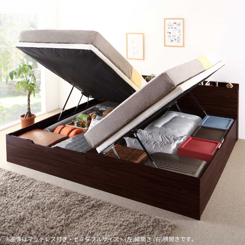 通気性抜群 棚コンセント付 跳ね上げベッド Prostor2 プロストル2 プレミアムボンネル付 縦開き 分割床板タイプ セミシングル フレームカラー ダークブラウン マットレスカラー ホワイト 組立設置サービス付き