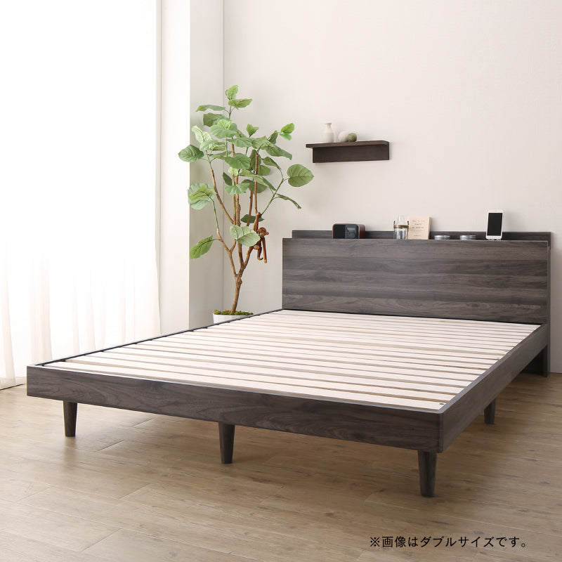 【KASANE】棚・コンセント・脚付き無垢すのこベッド フレームのみ ダブル フレームカラー ダークグレー 寝具カラー 組立設置サービス付き